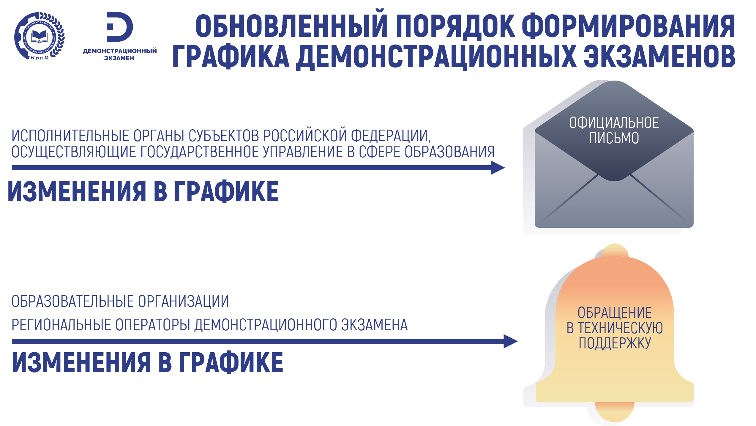 Важное обновление при формировании графиков демонстрационного экзамена. Теперь большинство корректировок можно вносить через обращение в техподдержку, без официальных писем, а сроки и типы изменений чётко регламентированы новым Порядком формирования графика демонстрационных экзаменов (приказ ФГБОУ ДПО ИРПО №01-09-698/2025 от 30.12.2025)