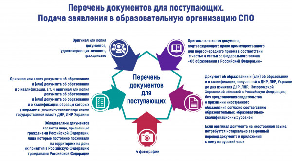 Скачайте информационное письмо и инфографику с разъяснениями об особенностях приема ребят из Донецкой Народной Республики, Луганской Народной Республики, Запорожской и Херсонской областей в колледжи и техникумы. Учитывайте новые разъяснения в организации приемной кампании-2024.