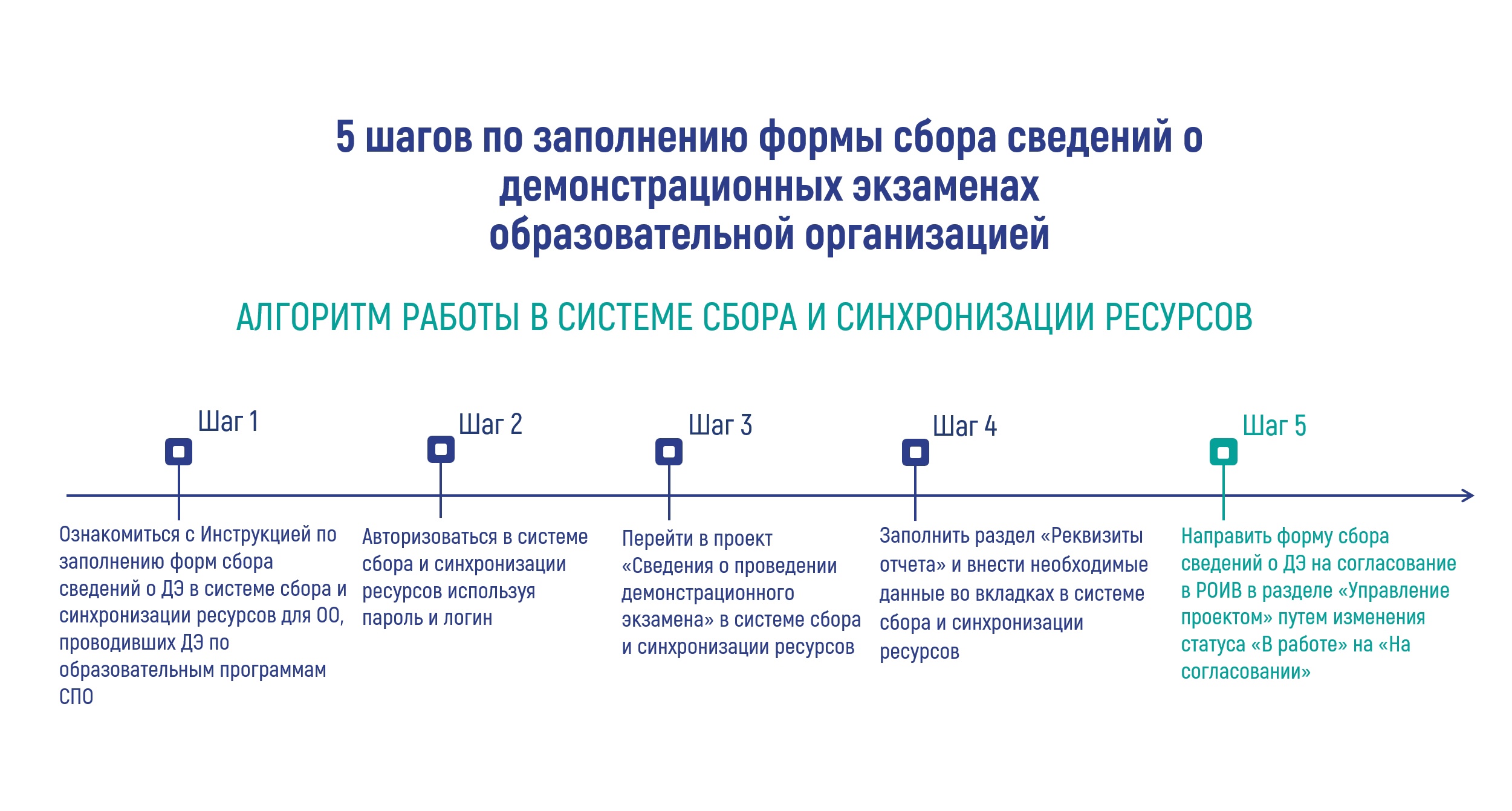 ФГБОУ ДПО ИРПО осуществляет сбор сведений о проведенных демонстрационных экзаменах с образовательных организаций, проводивших демонстрационные экзамены по образовательным программам среднего профессионального образования, посредством Системы сбора и синхронизации ресурсов. Заполнение формы сбора сведений о проведенных демонстрационных экзаменах осуществляется в соответствии с письмом Министерства просвещения Российской Федерации от ___ 2026 года №___, направленное в адрес исполнительных органов субъектов Российской Федерации, осуществляющих государственное управление в сфере образования.