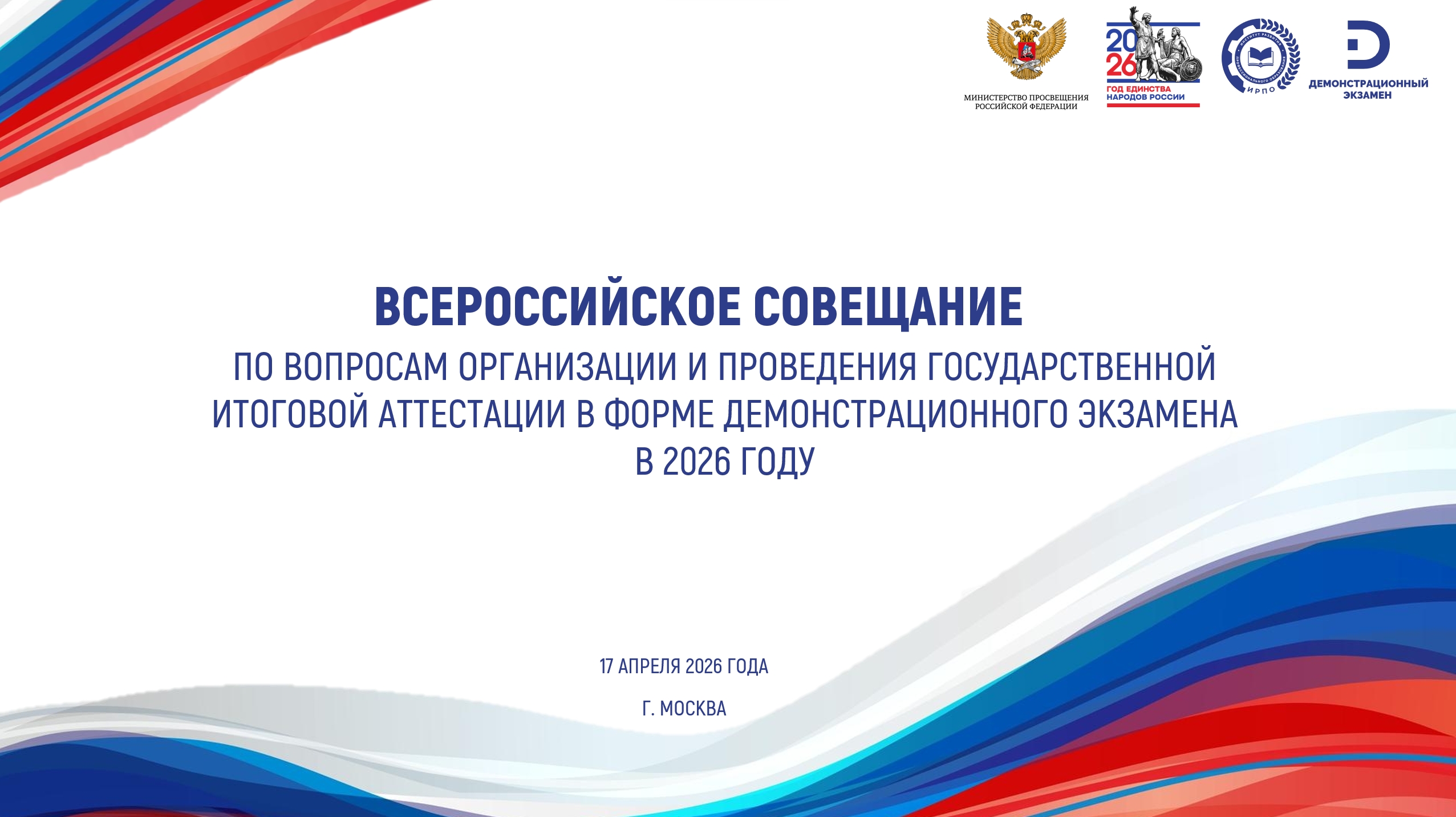 Цель: Обсуждение актуальных вопросов организации и проведения государственной итоговой аттестации по образовательным программам среднего профессионального образования в форме демонстрационного экзамена в 2026 году. Участники: руководители, представители исполнительных органов власти субъектов Российской Федерации, осуществляющих государственное управление в сфере образования; координаторы демонстрационного экзамена субъектов Российской Федерации.