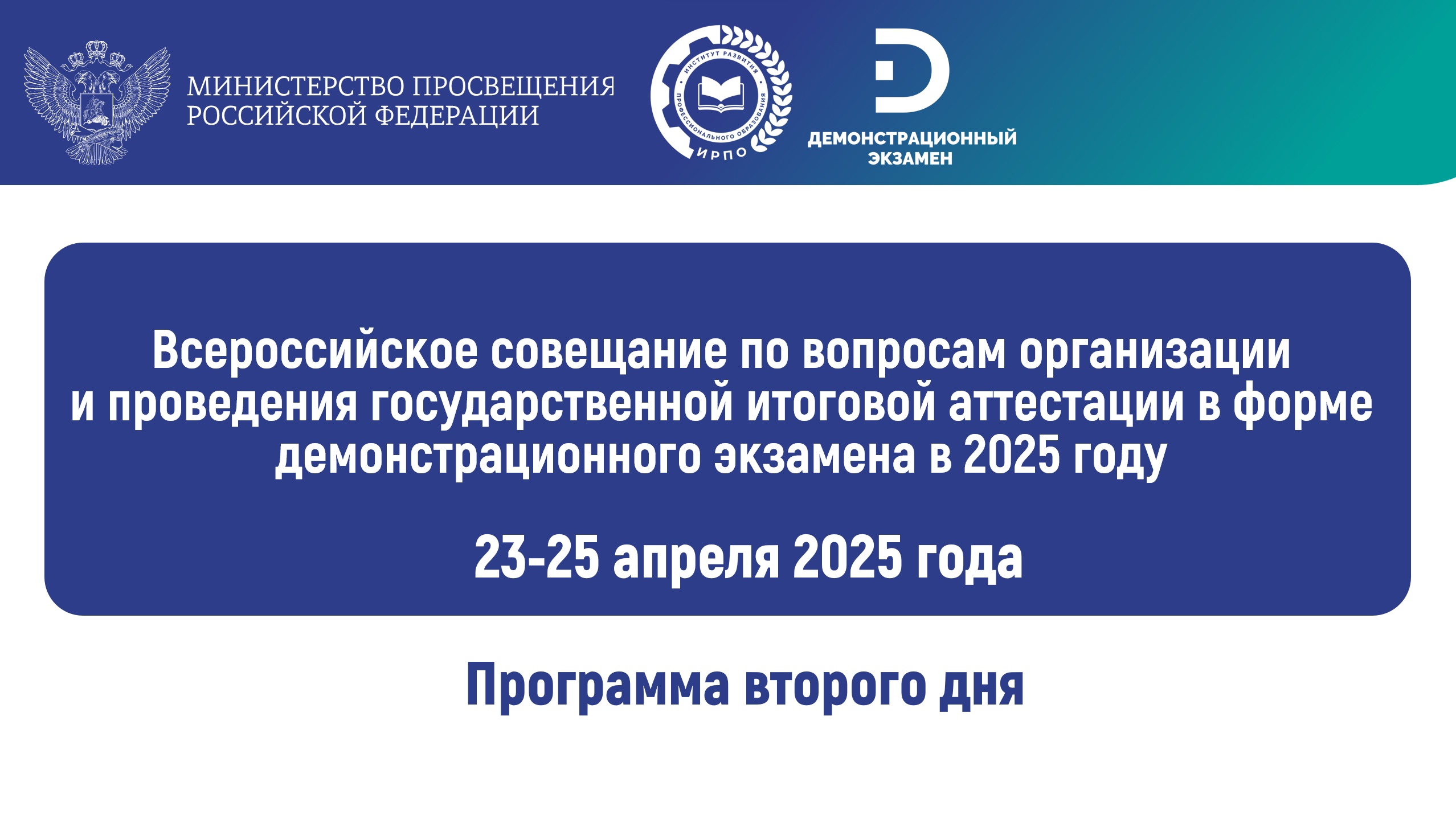 23 апреля 2025 года состоится открытие Всероссийского совещания по вопросам организации и проведения государственной итоговой аттестации в форме демонстрационного экзамена в 2025 году